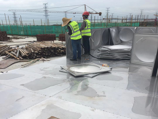 • 水箱安裝完畢,焊縫經酸洗、鈍化處理,提高了水箱的耐蝕能力,水箱自安裝起外形穩定,永不滲漏